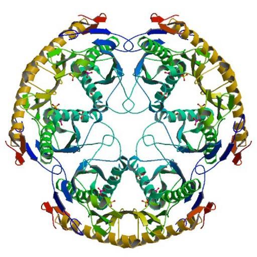 | Keywords: Crystal structure 1UDN.jpg Crystal structure of bacterial RNase PH taken from the Protein Data Bank website http //www pdb org/pdb/images/1udn_bio_r_500 jpg PD-USGov Check categories 2008 November 13 en wikipedia RNase_PH Transferases Hydrolases |