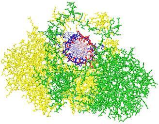 | Keywords: Crystal Structure of the Ku Heterodimer - 30.png All beta proteins SPOC domain-like SPOC domain-like Ku70 subunit middle domain Ku70 subunit middle domain Alpha and beta proteins a or b vWA-like vWA-like Ku70 subunit N-terminal domain Ku70 subunit N-terminal domain All beta proteins SPOC domain-like SPOC domain-like Ku80 subunit middle domain Ku80 subunit middle domain Alpha and beta proteins a or b vWA-like vWA-like Ku80 subunit N-terminal domain Ku80 subunit N-terminal domain pl Heterodimer ludzkiego białka Ku przyłączony do nici DNA Ku70 zaznaczono kolorem zielonym Ku80 - żółtym a łańcuchy DNA - czerwonym i niebieskim Do wizualizacji danych krystalograficznych z pliku PDB 1JEY http //www rcsb org/pdb/explore/explore do pdbId 1JEY użyto programu Swiss-PDBViewer 4 0 1 en Human Ku heterodimer protein attached to DNA Ku70 is marked green Ku80 - yellow and the chains of DNA - the red and blue Crystallographic data visualization of the PDB file 1JEY http //www rcsb org/pdb/explore/explore do pdbId 1JEY used the Swiss-PDBViewer 4 0 1 Own 2009-12-22 User Karol007/signature Own work all rights released Public domain Ku protein |