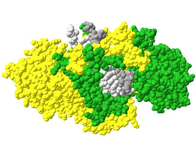 Keywords: Crystal Structure of the Ku Heterodimer - 33.png All beta proteins SPOC domain-like SPOC domain-like Ku70 subunit middle domain Ku70 subunit middle domain Alpha and beta proteins a or b vWA-like vWA-like Ku70 subunit N-terminal domain Ku70 subunit N-terminal domain All beta proteins SPOC domain-like SPOC domain-like Ku80 subunit middle domain Ku80 subunit middle domain Alpha and beta proteins a or b vWA-like vWA-like Ku80 subunit N-terminal domain Ku80 subunit N-terminal domain pl Heterodimer ludzkiego białka Ku przyłączony do nici DNA Ku70 zaznaczono kolorem zielonym Ku80 - żółtym a łańcuchy DNA - czerwonym i niebieskim Do wizualizacji danych krystalograficznych z pliku PDB 1JEY http //www rcsb org/pdb/explore/explore do pdbId 1JEY użyto programu Swiss-PDBViewer 4 0 1 pl Heterodimer ludzkiego białka Ku przyłączony do nici DNA Ku70 zaznaczono kolorem zielonym Ku80 - żółtym a łańcuchy DNA - szarym Do wizualizacji danych krystalograficznych z pliku PDB 1JEY http //www rcsb org/pdb/explore/explore do pdbId 1JEY użyto programu Swiss-PDBViewer 4 0 1 en Human Ku heterodimer protein attached to DNA Ku70 is marked green Ku80 - yellow and the chains of DNA - gray Crystallographic data visualization of the PDB file 1JEY http //www rcsb org/pdb/explore/explore do pdbId 1JEY used the Swiss-PDBViewer 4 0 1 Own 2009-12-21 User Karol007/signature Own work all rights released Public domain Ku protein |