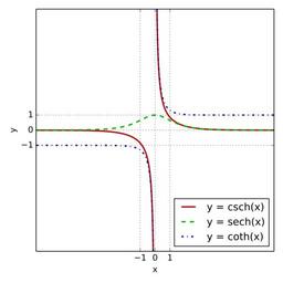 | Keywords: Csch sech coth.svg The hyperbolic cosecant red hyperbolic secant green and hyperbolic cotangent blue graphed on the same axes Replaces Csch_sech_coth png ;Instructions Generated with en Matplotlib using the script below Edited using en Inkscape to fix clipping issues 2016-03-10 own Fylwind wikipedia en Other fields Matplotlib + import numpy as np import matplotlib pyplot as plt def clip ys limit return np ma masked_where np abs ys > limit ys lim 8 size 5 6 fig ax plt subplots figsize size size xs np linspace -lim lim 1000 ax plot xs clip 1 / np sinh xs lim 2 label y csch x color b30000 linestyle - linewidth 2 ax plot xs 1 / np cosh xs label y sech x color 00b300 linestyle -- linewidth 2 ax plot xs clip 1 / np tanh xs lim 2 label y coth x color 0000b3 linestyle - linewidth 2 ax set_xlim -lim lim ax set_ylim -lim lim ax set_xticks -1 0 1 ax set_yticks -1 0 1 ax set_xlabel x ax set_ylabel y ax grid on ax legend loc lower right fig tight_layout fig savefig csch_sech_coth svg transparent True original upload log All user names refer to en wikipedia 2006-03-14 10 38 Ktims 1600×1200×0 10563 bytes The hyperbolic cosecant red hyperbolic secant green and hyperbolic cotangent blue graphed on the same axes 2006-03-14 10 35 Ktims 1600×1200×0 13176 bytes The hyperbolic cosecant red hyperbolic secant green and hyperbolic cotangent blue graphed on the same axes Hyperbolic functions |