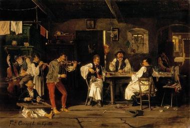 | Keywords: Cserépy Hungarians Amusing Themselves 1891.jpg Artwork Creator Árpád Cserépy 1891 Oil on canvas Size cm 131 90 Private collection object history exhibition history credit line bottom left Cserépy Á 891 B pest accession number http //www kieselbach hu/ kieselbach hu http //www kieselbach hu/artwork/hungarians-amusing-themselves_-1891_11978 lang en Info http //www kieselbach hu/upload/artwork/186/589/1 jpg Pic PD-old-100 Árpád Cserépy 1891 paintings | ||||