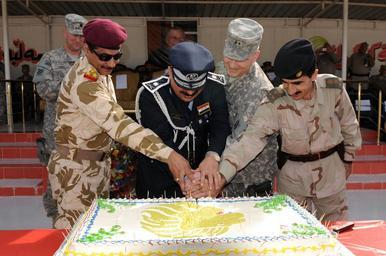 | Keywords: CSF Graduates DVIDS252770.jpg en Brig Gen Abdul Amir Hassan division deputy commander Iraqi Army Maj Gen Jamal Taher Bakr provincial director of police Maj Gen Anthony A Cucolo III commanding general 3rd Infantry Division and Brig Gen Shirko Fatih Schiwani representative for the Kurdistan Regional Government cut a cake during the Combined Security Force Graduation Ceremony at the Kirkuk Training Center in Kirkuk Iraq Feb 15 The CSF is a unit comprised of U S Kurdish and Iraqi personnel designed specifically to increase security during the election process 2010-02-15 Petty Officer 1st Class matthew leistikow https //www dvidshub net/image/252770 100215-N-+++++-564 2010-02-19 20 38 KIRKUK IQ PD-USGov-Military-Navy Kirkuk Training Center 3rd Infantry Division United States Images from DoD uploaded by Fæ |