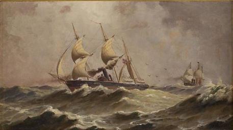 | Keywords: CSS Alabama escaping from a Federal frigate.jpg CSS Alabama escaping from a Federal frigate Signed at lower right F Muller https //new liveauctioneers com/item/10976211_att-frank-muller-dc-1860-1938-maritime Liveauctioneers Lot 94 Oil canvas in 8 5 15 5 inscription F Muller signed lower right EN Francis Christian Muller Alabama ship 1862 Naval ships of the United States in art PD-Art PD-old-auto 1938 US | ||||