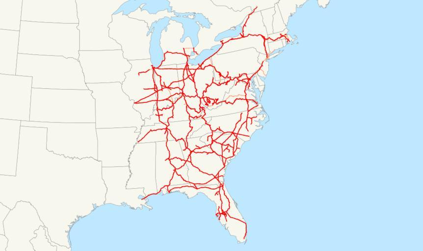 | Keywords: CSX map.svg CSX Transportation system map svg This is a map of the CSX rail network Only selected trackage rights are shown The following GIS data was used sample data included with ArcGIS for state and provincial boundaries http //www bts gov/publications/north_american_transportation_atlas_data/ NORTAD for Canadian rail lines http //www bts gov/publications/national_transportation_atlas_database/2006/ 2006 National Transportation Atlas Database for U S rail lines A standard North American Lambert conformal conic projection was used Various sources including the NTAD data were used to determine where CSX operates There may be errors; additionally most minor branches are not shown System maps of U S railroads CSX Transportation |