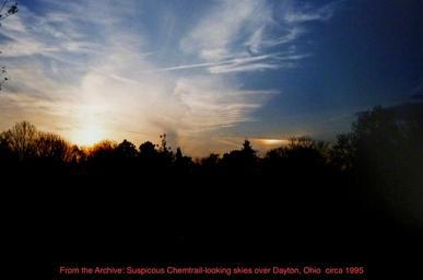 | Keywords: chemtrail chemtrails contrail contrails cloud clouds “cloud seeding” greenhouse “greenhouse effect” “global warming” climate “climate change” geoengineering engineering” “weather control” aluminum barium strontium nano-particles nanoparticles nano-aerosols nanoaerosols “aerosol spraying” haarp airplane jet “jet airplane” airforce “air force” sky weather dimming” usa dayton ohio wpafb “area 51” “classified government program” controversy conspiracy secret infowars outdoor field landscape sunset From the Archives: Suspicious Chemtrail-looking clouds over Dayton, Ohio circa 1995 From the Archives: Suspicious Chemtrail-looking clouds over Dayton, Ohio circa 1995 |