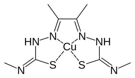 | Keywords: Cu-ATSM skeletal.svg Skeletal formula of copper II diacetyl-di N 4 -methylthiosemicarbazone Created using http //www acdlabs com/download/chemsk html ACD/ChemSketch 10 0 and Inkscape Formal charges not displayed Own 2007-07-27 Fvasconcellos 02 56 28 July 2007 UTC Copper complexes Radiopharmaceuticals |