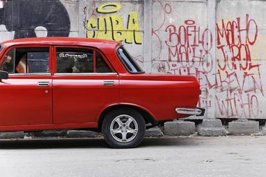 Keywords: cuba havana oldtimer car auto red street urban graffiti wall soviet car lada