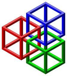 Keywords: cubes impossible geometry optical illusion red green blue