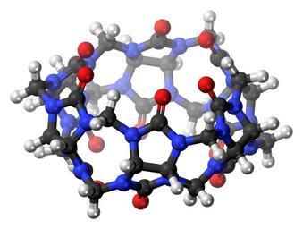 | Keywords: Cucurbit(6)uril-(side)-3D-balls.png Ball-and-stick model of the Cucurbit6uril molecule one of the cucurbiturils a group of macrocyclic compounds which have many applications in supramolecular chemistry This image shows the side view Colour code 505050 Carbon C black<br> F0F0F0 Hydrogen H white<br> F51E1E Oxygen O red<br> 3C50FA Nitrogen N blue<br> 2011-06-03 own DS Visualizer Jynto talk Top view ball-and-stick version Top view space-filling version Top view stick version Side view space-filling version Side view stick version cc-zero Cucurbiturils Images by Jynto Ball-and-stick models |
