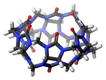 | Keywords: Cucurbit(6)uril-(side)-3D-sticks.png Stick model of the Cucurbit6uril molecule one of the cucurbiturils a group of macrocyclic compounds which have many applications in supramolecular chemistry This image shows the side view Colour code 505050 Carbon C black<br> F0F0F0 Hydrogen H white<br> F51E1E Oxygen O red<br> 3C50FA Nitrogen N blue<br> 2011-06-03 own DS Visualizer Jynto talk Top view ball-and-stick version Top view space-filling version Top view stick version Side view ball-and-stick version Side view space-filling version cc-zero Cucurbiturils Images by Jynto 3D-sticks models |