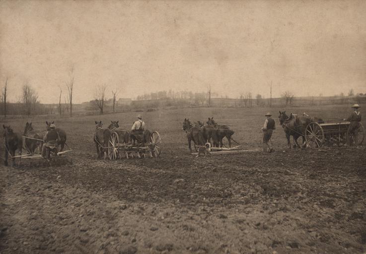 | Keywords: agricultural machinery and implements agriculturalmachineryandimplements farming horses monochrome outdoor Photographer: Reuben R. Sallows (1855 - 1937) Description: Four farmers with teams of horses and implements working in field of peas; backs to camera; dog; all men wearing hats (written on back: Spring seeding; Lot 9, Concession 2, E.D. Colborne Township, farm of William Hill, 1908. From right to left: Hugh Hill; William Hill, Sr.; Charles Keating; William W. Hill, Jr.) Object ID : 0335-rrs-ogohc-ph View additional photographs by Sallows that are held in other collections at the Reuben R. Sallows Digital Library. Order a higher-quality version of this item by contacting the Huron County Museum (fee applies). Photographer: Reuben R. Sallows (1855 - 1937) Description: Four farmers with teams of horses and implements working in field of peas; backs to camera; dog; all men wearing hats (written on back: Spring seeding; Lot 9, Concession 2, E.D. Colborne Township, farm of William Hill, 1908. From right to left: Hugh Hill; William Hill, Sr.; Charles Keating; William W. Hill, Jr.) Object ID : 0335-rrs-ogohc-ph View additional photographs by Sallows that are held in other collections at the Reuben R. Sallows Digital Library. Order a higher-quality version of this item by contacting the Huron County Museum (fee applies). |