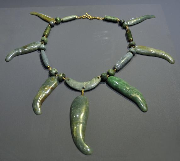 | Keywords: Cultures précolombiennes MRAH Olmèque collier jade 02 10 2011.jpg fr Collier en jadéite avec des éléments représentant des griffes de jaguar culture olmèque préclassique moyen 900 - 400 -JC Mexique ou Honduras Musées Royaux d'Art et d'Histoire MRAH Parc du Cinquantenaire Bruxelles 2011-10-02 own Vassil Cc-zero Collection from America Jubilee Park Museum Jadeite Mesoamerican jade jewellery | ||||