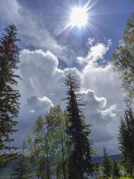 Keywords: cumulus clouds clouds thunderstorm weather sky landscape scenery trees nature gleaming sun season
