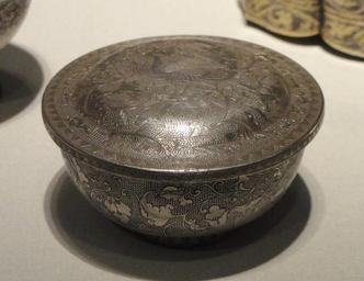 | Keywords: Cup with cover, probably Chang'an, Shaanxi province, China, early to mid Tang dynasty, late 7th-early 8th century AD, stamped and engraved silver - Freer Gallery of Art - DSC05604.JPG en Exhibit in the Freer Gallery of Art Washington DC USA This artwork is old enough so that it is in the public domain Photography was permitted in the museum without restriction 2013-02-12 15 58 42 own Daderot cc-zero Metalwork of China in the Freer Gallery of Art Uploaded with UploadWizard Metalwork of the Tang Dynasty |