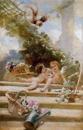 | Keywords: Cupid Gardeners by Konstantin Makovsky.jpg Artwork Creator Konstantin Makovsky Oil on canvas cm 225 138 Private collection accession number object history ProvenanceEvent 2008-06-09 anonymous sale Sotheby's London 11 credit line http //www sothebys com/app/live/lot/LotDetail jsp lot_id 159459572 http //www flickr com/photos/sofi01/4266030784/ PD-old-auto 1915 Konstantin Makovsky 20th-century paintings of putti Paintings of gardens Images from Sotheby's 19th-century paintings not categorised by year Paintings of baskets 19th-century paintings in unidentified private collections Wheelbarrows in art 20th-century paintings in unidentified private collections 20th-century paintings not categorised by year |
