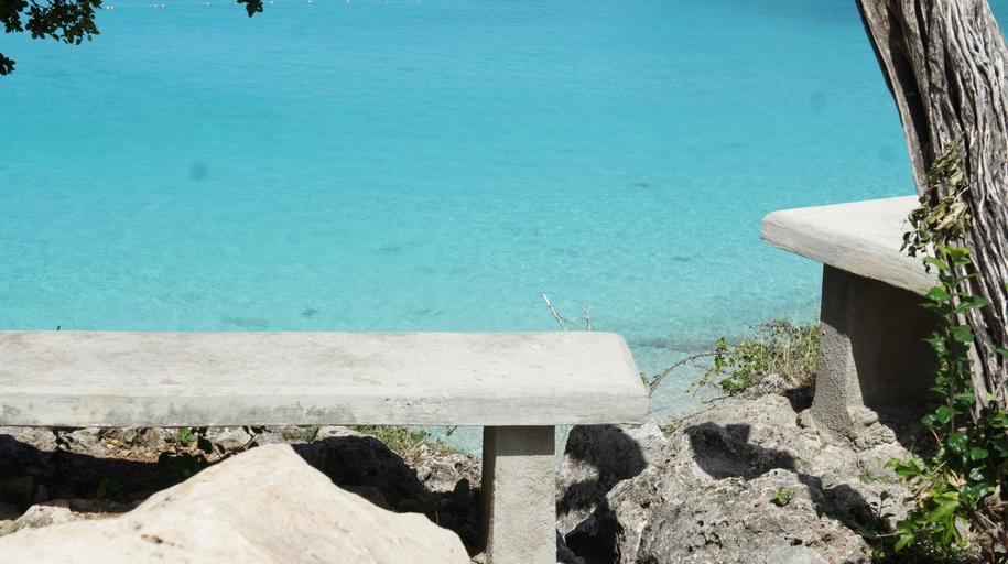 Keywords: curacao sea water coast island ocean nature caribbean abc islands blue holiday lake turquoise landscape rest tropical view bank bench stone bench rock tree