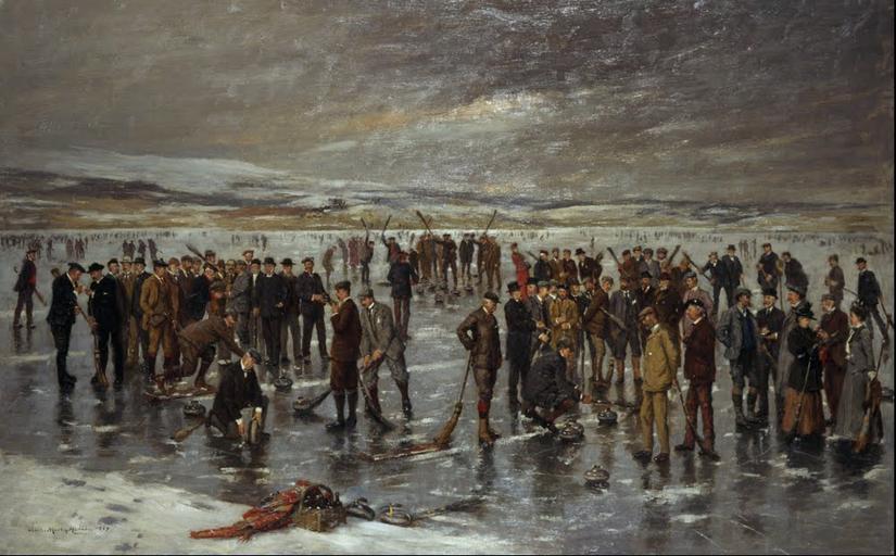| Keywords: Curling at Carsebreck Charles Martin Hardie.jpg In 1899 the Royal Caledonian Curling Club celebrated its Diamond Jubilee This picture was commissioned to celebrate the event The sixty-one figures are all portraits and a detailed key to their identities was published 1899 Oil on canvas cm 75 60 121 90 framed cm 88 00 134 00 4 20 Institution National Gallery of Scotland object history Purchased 1959 credit line accession number PG 1856 http //www nationalgalleries org/collection/online_search/4 324/result/0/8207 National Gallery of Scotland PD-Art Curling in Scotland Charles Martin Hardie Curling in art |