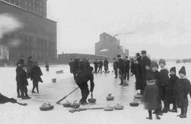 | Keywords: sports curling winter grain elevators grainelevators kam river kamriver children fort william fortwilliam winter sports wintersports cpr canadian pacific railway canadianpacificrailway thunder bay thunderbay ontario canada history blackandwhite monochrome black and white Date: c. 1893-94 Description: This photograph shows a group of unidentified men curling on the Kam River during the visit of Lord Aberdeen, Governor General of Canada. The men are playing on the ice in front of the Canadian Pacific Railway's grain elevator B (prior to the construction of Elevator E). A group of young boys watch the action. Accession No.: 972.27.1 Date: c. 1893-94 Description: This photograph shows a group of unidentified men curling on the Kam River during the visit of Lord Aberdeen, Governor General of Canada. The men are playing on the ice in front of the Canadian Pacific Railway's grain elevator B (prior to the construction of Elevator E). A group of young boys watch the action. Accession No.: 972.27.1 |