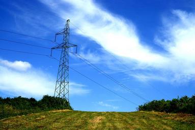 Keywords: current high-voltage line line the voltage meadow view colored nature sky blue clouds