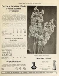| Keywords: Currie's bulbs and plants (Page 3) (16251886817).jpg CUR R 1E BROS Cd AtlTUMN CATALOGUE 1913 <br> Currie's Selected Early <br> French Roman <br> Hyacinths <br> These are especially valuable for forcing and pot <br> culture in the house each bulb producing from two <br> to six spikes of dainty very fragrant flowers <br> If planted early in September they can be brought <br> into flower in November and by keeping them under <br> cover and bringing into the light when wanted a <br> succession of bloom may be kept up until May They <br> are not considered hardy as far north as this but by <br> protecting well from severe frosts we have had very <br> pretty beds of them early in spring <br> Karly White One of the most popular bulbous <br> flowering plants used by florists in very large num- <br> bers for cut flowers The bulbs planted at intervals <br> from September to December will bloom from Novem- <br> ber to May The flowers are deliciously fragrant <br> Each <br> Selected bulbs 05 <br> Extra selected 06 <br> Blush Pink 04 <br> Blue 04 <br> White Italian Hya- <br> cinths Similar to Ro- <br> man Hyacinths but <br> later 04 <br> Doz <br> 100 <br> 1000 <br> 50 <br> 3 75 <br> 35 00 <br> 60 <br> 4 50 <br> 40 00 <br> 40 <br> 3 25 <br> 28 00 <br> 40 <br> 3 25 <br> 28 00 <br> 40 <br> 3 25 <br> 28 00 <br> Miniature or Dutch Roman <br> Hyacinths <br> Miniature Single Dutch Hyacinths suitable for <br> early forcing each bulb giving one or more neat little <br> spikes of bloom Very pretty in cut flower work and <br> highly ornamental for winter blooming in the house <br> the most satisfactory results being obtained by plant- <br> ing about a dozen bulbs in a shallow pan 9 inches in <br> diameter <br> Each <br> Doz <br> 100 <br> 1000 <br> Named varieties Gran- <br> deur a Merveille Gi- <br> gantea Gertrude Ba- <br> roness van Thuyll La <br> Grandesse L ' I n n o - <br> c e n c e Czar Peter <br> Grand Maitre King <br> of the Blues Lord <br> Macaulay Norma <br> Queen of the Blues <br> Rose Mixed <br> White Mixed <br> Blue Mixed <br> 04 <br> 04 <br> 40 <br> 35 <br> 3 00 <br> 2 50 <br> 25 00 <br> 20 00 <br> FRENCH ROMAN HYACINTHS <br> Hyacinth Glasses <br> Grape Hyacinths <br> Hyaclnthus Muscari <br> Pretty little spikes of flowers about 6 inches high <br> resembling miniature bunches of grapes Very pretty <br> for edging Perfectly hardy <br> Doz 100 1000 <br> Blue 12 85 7 00 <br> White 20 1 25 10 00 <br> Various colors <br> Low and tall <br> Each <br> 15 <br> Doz <br> 1 50 <br> By express at purchas- <br> er's expense <br> All bulbs on this page delivered to any Postoffice or Express Office in the United States at prices named 42159887 132797 65947 Page 3 Text http //www biodiversitylibrary org/page/42159887 1913 10 5962/bhl title 65947 Currie Brothers Company ; Henry G Gilbert Nursery and Seed Trade Catalog Collection NameFound Muscari NameConfirmed Muscari EOLID 33209 NameBankID 2662609 Biodiversity Heritage Library Currie's bulbs and plants autumn 1913 new album Garden Stories Bulbs Plants Catalogs Flowers Nurseries Horticulture Plants Ornamental Seeds U S Department of Agriculture National Agricultural Library bhl page 42159887 dc identifier http //biodiversitylibrary org/page/42159887 bhlGardenStories Hyacynths BHLinbloom bulbs plants nurseries horticulture plants ornamental u s department of agriculture national agricultural library bhlgardenstories bhlinbloom Information field Flickr posted date ISOdate 2015-02-03 Check categories 2015 September 17 PD-old-70-1923 1913 books Currie's bulbs and plants Photos uploaded from Flickr by FĂŚ using a script Files from the Biodiversity Heritage Library released as Attribution-NonCommercial-ShareAlike |