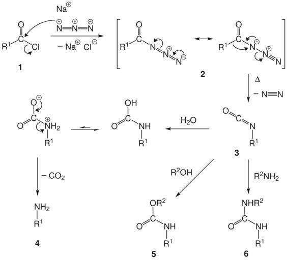 Keywords: Curtius rearrangement mechanism v1.svg en Mechanism of the Curtius rearrangement de Mechanismus der Curtius-Reaktion selbst erstellt mit ChemBioOffice 11 LinuxCLP 2011-08-12 Cc-zero Curtius rearrangement
