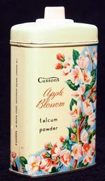 | Keywords: Cussons Apple Blossom talcum powder tin, pic6.JPG Very old packaging of a Dutch product that is not produced and not sold any more Photographed at a collector of Droste For info see http //www tincollectors nl/ tincollectors nl or email info tincollectors nl own 2014-04-13 12 57 51 Alf van Beem CC-Zero Trademarked Talcum powder tins |