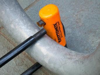 | Keywords: I found this Kryptonite Evolution Series 4 bicycle lock on a bike rack at school. It had been cut through with a hacksaw, probably by a thief, but possibly by an owner who lost their key. I found it a bit disturbing because my bicycle has exactly the same lock. I found this Kryptonite Evolution Series 4 bicycle lock on a bike rack at school. It had been cut through with a hacksaw, probably by a thief, but possibly by an owner who lost their key. I found it a bit disturbing because my bicycle has exactly the same lock. |