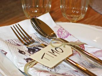 Keywords: cutlery cover table fork eat knife plate gedeckter table board metal gastronomy restaurant invitation inn glass metal fork local seat festivity meal celebration going out table cover name timo place cards