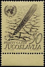 | Keywords: CvetkovicYugoslavia687ParchedEarthWheatFAO3-21-63-BJakac.jpg en Cracked earth and wheat stalk drawn by Božidar Jakac issued on March 21 1963 to publicize the FAO's Freedom From Hunger campaign Scott No 687 SG No 1071 The inscription reads Against hunger sl Razpokana zemlja in pšenični klas risal Božidar Jakac izdano 21 marca 1963 za oglaševanje kampanje Svetovne organizacije za prehrano in kmetijstvo Scott No 687 SG No 1071 Napis »Proti lakoti « 1963 http //s1181 photobucket com/user/nethryk/media/Volume 205/CvetkovicYugoslavia649AnophelesMosquito4-7-62-BJakac jpg html Božidar Jakac drawer ; Velibor Cvetković engraver other versions PD-Yugoslavia Uploaded with UploadWizard Drawings by Božidar Jakac Stamps of Yugoslavia 1963 Food and Agriculture Organization 1963 drawings Hunger on stamps Wheat on stamps Cracked earth United Nations flags and insignia Inscriptions on stamps |