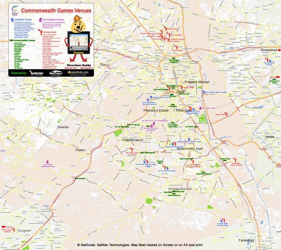 | Keywords: CWG Map Images.jpeg en SatGuide is the pioneer of Indian GPS Navigation and the market leaders in navigation products and services SatGuide has been collecting and creating maps database and routing since 1999 The map shows the path and the directions for the Common Wealth Games 2010 Delhi India own SatGuide 2010-09-02 Portable GPS navigation devices Product maps |