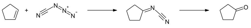 Keywords: Cyanogen azide reaction02.svg en Chemistry of cyanogen azide - addition to cyclopentene de Chemie des Cyanazides - Addition an Cyclopenten own Steffen 962 2015-01-22 PD-chem Cyanogen azide Cc-zero