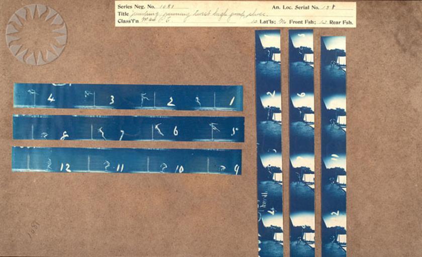 | Keywords: photography physics inventors muybridge smithsonian probably public domain probablypublicdomain SI Neg. 2004-44754. Date: na....Title: "Jumping; running twist high jump, shoes.".Series Neg. No. 1081.An. Loc. Serial No. 158.Classification: "Man P.C.".Muybridge's cyanotypes are working proofs, the contact prints he made from more than 20,000 negatives he took at the University of Pennsylvania between 1884 and 1886 while photographing human and animal subjects in motion from lateral (parallel), front and rear positions. Since the original negatives no longer exist, the cyanotypes provide us with the opportunity to see the pictures Muybridge achieved before he edited and cropped them for publication..From the Photographic History Collection, National Museum of American History...Credit: Eadweard Muybridge (Smithsonian Institution) SI Neg. 2004-44754. Date: na....Title: "Jumping; running twist high jump, shoes.".Series Neg. No. 1081.An. Loc. Serial No. 158.Classification: "Man P.C.".Muybridge's cyanotypes are working proofs, the contact prints he made from more than 20,000 negatives he took at the University of Pennsylvania between 1884 and 1886 while photographing human and animal subjects in motion from lateral (parallel), front and rear positions. Since the original negatives no longer exist, the cyanotypes provide us with the opportunity to see the pictures Muybridge achieved before he edited and cropped them for publication..From the Photographic History Collection, National Museum of American History...Credit: Eadweard Muybridge (Smithsonian Institution) |