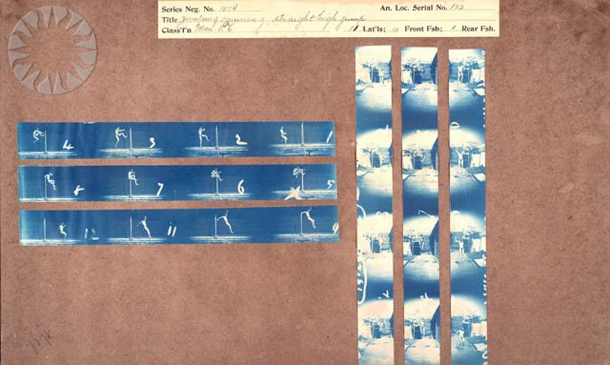 Keywords: photography physics inventors muybridge smithsonian probably public domain probablypublicdomain SI Neg. 2004-44750. Date: na....Title: "Jumping running straight high jump.".Series Neg. No. 1074.An. Loc. Serial No. 152.Classification: 'Man P.C.".Muybridge's cyanotypes are working proofs, the contact prints he made from more than 20,000 negatives he took at the University of Pennsylvania between 1884 and 1886 while photographing human and animal subjects in motion from lateral (parallel), front and rear positions. Since the original negatives no longer exist, the cyanotypes provide us with the opportunity to see the pictures Muybridge achieved before he edited and cropped them for publication..From the Photographic History Collection, National Museum of American History...Credit: Eadweard Muybridge (Smithsonian Institution) SI Neg. 2004-44750. Date: na....Title: "Jumping running straight high jump.".Series Neg. No. 1074.An. Loc. Serial No. 152.Classification: 'Man P.C.".Muybridge's cyanotypes are working proofs, the contact prints he made from more than 20,000 negatives he took at the University of Pennsylvania between 1884 and 1886 while photographing human and animal subjects in motion from lateral (parallel), front and rear positions. Since the original negatives no longer exist, the cyanotypes provide us with the opportunity to see the pictures Muybridge achieved before he edited and cropped them for publication..From the Photographic History Collection, National Museum of American History...Credit: Eadweard Muybridge (Smithsonian Institution) |