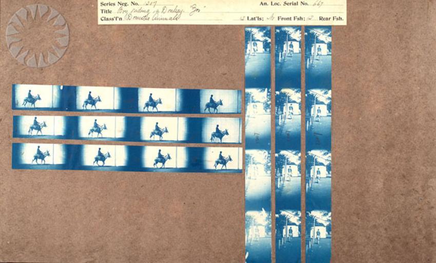 | Keywords: photography physics inventors muybridge smithsonian probably public domain probablypublicdomain SI Neg. 2004-44894. Date: na....Title: "Boy riding a donkey, 'Zoo'.".Series Neg. No. 1207.An. Loc. Serial No. 667.Classification: "Domestic Animals.".Muybridge's cyanotypes are working proofs, the contact prints he made from more than 20,000 negatives he took at the University of Pennsylvania between 1884 and 1886 while photographing human and animal subjects in motion from lateral (parallel), front and rear positions. Since the original negatives no longer exist, the cyanotypes provide us with the opportunity to see the pictures Muybridge achieved before he edited and cropped them for publication..From the Photographic History Collection, National Museum of American History...Credit: Eadweard Muybridge (Smithsonian Institution) SI Neg. 2004-44894. Date: na....Title: "Boy riding a donkey, 'Zoo'.".Series Neg. No. 1207.An. Loc. Serial No. 667.Classification: "Domestic Animals.".Muybridge's cyanotypes are working proofs, the contact prints he made from more than 20,000 negatives he took at the University of Pennsylvania between 1884 and 1886 while photographing human and animal subjects in motion from lateral (parallel), front and rear positions. Since the original negatives no longer exist, the cyanotypes provide us with the opportunity to see the pictures Muybridge achieved before he edited and cropped them for publication..From the Photographic History Collection, National Museum of American History...Credit: Eadweard Muybridge (Smithsonian Institution) |