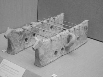 | Keywords: CycladicFireDogs06649.jpg Cycladic 2200-1700 BCE terra-cotta fire dogs from an excavation on Santorini Own 2007-04-03 User Leonard G Note Ilumination was devoid of blue so this monochrome image is solely the green channel which gave the best contrast Related images provided for further color adjustment If you color adjust an image reference that in this specific image file above rather than in gallery <gallery> Image MusAkrotiriItem48-6634 JPG Image MusAkrotiriCardItem48Image06635 jpg Image MusAkrotiriItems49-52-6634 JPG Image MusAkrotirCardVaseDesc06636 jpg Image MuseAckrotiriItems53-54-6638 jpg Image MuseAcrotiriItems55-57-6639 jpg Image MuseAcrotiriItems-6640 jpg Image MuseAcrotiriItems-6641 JPG Image MuseAcrotiriItems-6642 JPG Image MuseAckrotiriItem70-6643 JPG Animal figurines Image MusAkrotiriCard63-70-06644 jpg Image MuseAcrotiriItems-133-134-6645 JPG Image MusAkrotiriCard134-138-06646 jpg Image DSC06647 JPG Volcanic ash cast white plaster for color reference for other images Image VolcanicAshObjCast06647 jpg Volcanic ash cast green channel with some distortion removed Image MuseAcrotiriItem160-6648 jpg Oven Image CycladicClayOven06649 jpg Oven green channel with distortion removed Image MuseAckrotiriItem161-162-6649 JPG Firedogs Image CycladicFireDogs06649 jpg Firedogs green channel Image MuseAcrotiriItems228-229-6650 JPG Image MuseAcrotiriItems-6651 JPG Image MuseAcrotiriItems-6652 JPG Image MuseAcrotirieItem232-6653 JPG Image MuseAcroItems283-6654 JPG </gallery> Cycladic culture Minoan terracotta tools in the Prehistoric Museum of Thira |
