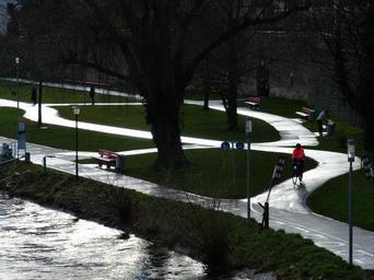 Keywords: cycle path cycle path network streets road network road traffic cyclists cycling rain wet shine