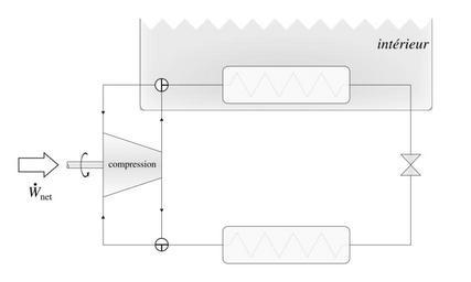 | Keywords: Cycle thermodynamique pompe à chaleur climatiseur inversable réversible.svg fr Représentation schématique d ™un cycle thermodynamique de pompe à chaleur inversable parfois dite réversible même si en thermodynamique le sens de ce mot est différent Lorsque les deux vannes sont pivotées de 90°dans le sens anti-horaire la pompe à chaleur devient climatiseur 2013 own Olivier Cleynen other versions cc-zero Thermodynamic cycles SVG physics SVG diagrams in French Uploaded with UploadWizard |