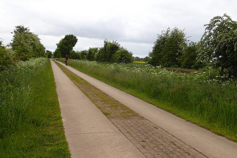Keywords: Smooth concrete, surprisingly good ride. railway bahn radweg cycleway lowersaxony agriculturalroad