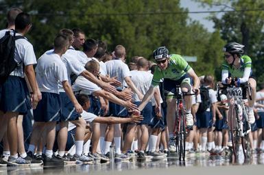 Keywords: cycling cyclists bicycles riders fast helmet fitness road ride biking competition crowd spectators
