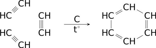 | Keywords: Cyclization of acetylene.svg Upload marker added by uk wp UW Опис uk Реакція т име изації ацетилену до бензену Для тестування ш ифтів товщин ліній озмі ів циклів у векто них ст укту них фо мулах ство юваних у chemfig Дже ело LaTeX + chemfig + Inkscape Час ство ення 2016 02 20 Авто Jarozwj |