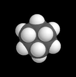 | Keywords: Cyclohexanmolekülmodell.png A calotte model of cyclohexane C6H12 The white spheres represent hydrogen atoms which surround a ring of carbon atoms in grey cyclohexane A ciklohexán kalotta-modellje A szénatomok fekete a hidrogének fehér színűek シクロヘキサンの空間充填モデル 水素原子は白色 炭素原子は灰色 環己烷的空間填充模型 Own 2004-09-07 de user Aglarech entfällt Cyclohexane Space-filling models |