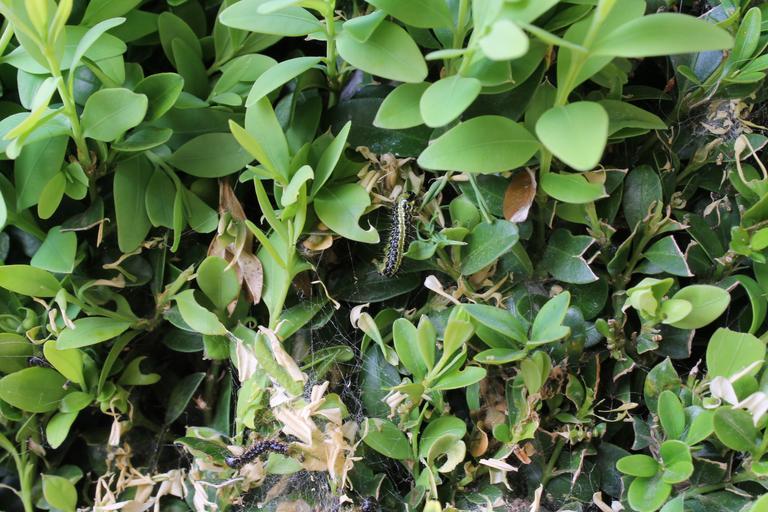 | Keywords: Cydalima perspectalis 6643.JPG cs Cydalima perspectalis na zimostrázu Buxus sempervirens Brno Komín Czech republic invasive insect 2014-04-24 08 23 59 own I Sáček senior cc-zero Uploaded with UploadWizard Cydalima perspectalis caterpillar Diseases and disorders of Buxus leaves Buxus sempervirens |