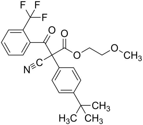 | Keywords: Cyflumetofen 200.svg validSVG Structure of 2-methoxyethyl 2- 4- tert-butyl phenyl -2-cyano-3-oxo-3- 2- trifluoromethyl phenyl propanoate Own 2014-05-30 Emeldir <span class signature-talk ></span> Chemical structure verified https //upload wikimedia org/wikipedia/commons/9/91/Cyflumetofen_200 svg 1S/C24H24F3NO4/c1-22 2 3 16-9-11-17 12-10-16 23 15-28 21 30 32-14-13-31-4 20 29 18-7-5-6-8-19 18 24 25 26 27/h5-12H 13-14H2 1-4H3 AWSZRJQNBMEZOI-UHFFFAOYSA-N 400882-07-7 PD-chem Trifluoromethylbenzenes Tert-butylbenzenes Methyl ethers |