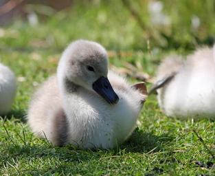 Keywords: cygnet baby swan cute fluffy bird animal wildlife outdoors nature beautiful close-up photo image adorable grass resting young