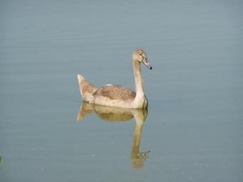 Keywords: cygnet water bird water surface reflection