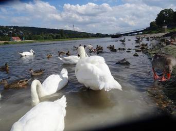 | Keywords: Cygnus olor from Loschwitzer Brücke 15 08 2016 DSC04949.jpg en The mute swans having nothing else to eat and they are getting oak flakes to eat 2016-08-15 15 24 25 own Swanoracle other versions cc-zero Cygnus olor from Loschwitzer Brücke 2016 |