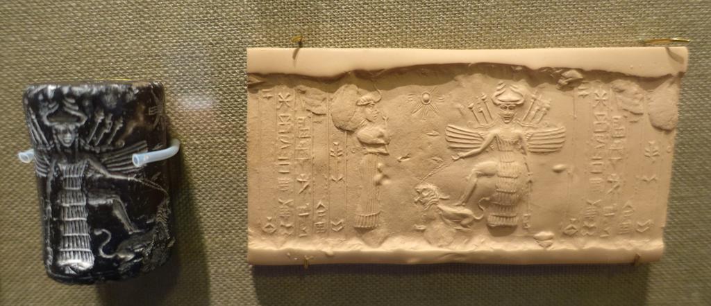 Keywords: Cylinder seal - Oriental Institute Museum, University of Chicago - DSC07246.JPG cylinder seal was dedicated to a little-known goddess Ninishkun who is shown interceding on the owner's behalf with the great goddess Ishtar Ishtar places her right foot upon a roaring Asiatic lion lion which she restrains with a leash The scimitar in her left hand and the weapons sprouting from her winged shoulders indicate her war-like nature Stone Akkadian period ca 2330 “2150 BC 4 2 × 2 5 cm Exhibit in the Oriental Institute Museum University of Chicago Chicago Illinois USA This work is old enough so that it is in the public domain Photography was permitted in the museum without restriction 2014-08-22 14 54 39 own Daderot other versions cc-zero Cylinder seals in the Oriental Institute Museum Uploaded with UploadWizard Ishtar Women with lions in art |