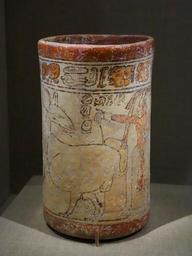 | Keywords: Cylinder vase with lord and deer, Mexico, Central Maya area, Maya, 600-800 AD, earthenware and pigment - De Young Museum - DSC00632.JPG en Exhibit in the De Young Museum San Francisco California USA This artwork is in the public domain because the artist died more than 70 years ago Photography was permitted in the museum without restriction 2013-11-05 15 37 39 own Daderot other versions cc-zero Maya ceramics in the De Young Museum Uploaded with UploadWizard | ||||