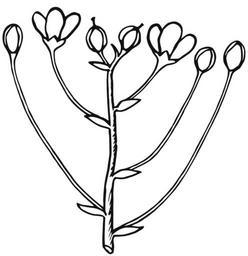 Keywords: Cyme (Inflorescence).svg Line art drawing of a cyme which is the main kind of cymose; cymose are determinate simple inflorescences PSF C-220005 png Inflorescence diagrams Pearson Scott Foresman SVGs SVG plants Cymes