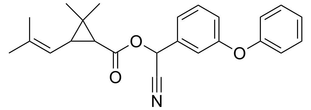Keywords: Cyphenothrin.svg Chemical structure of cyphenothrin Own 15 21 30 August 2011 UTC Ed Edgar181 Pyrethroids Nitriles Phenol ethers